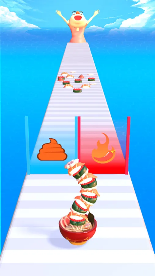 Ramen noodle soup is made by collecting the ingredients on the way. Your mission is to collect as many ingredients as you can to make the highest noodle bowl. There will be scrumptious ingredients and also rotten ones that make you want to vomit. The boy at the way end will eat the soup you made and his reaction will be various depending on the ingredients you picked up. If you love to see his different reaction, feel free to collect whatever you want on the way but remember to mind the obstacles. There will be a lot of hurdles preventing you from making the food tower and getting you lost.
