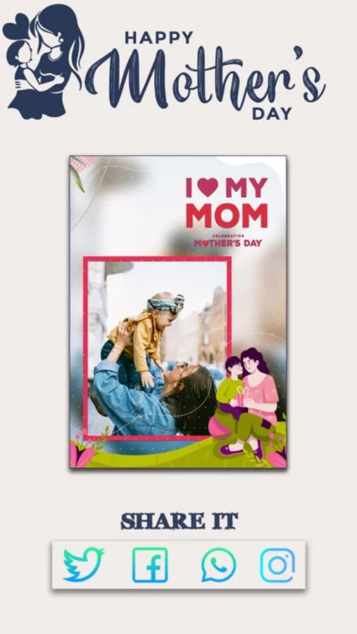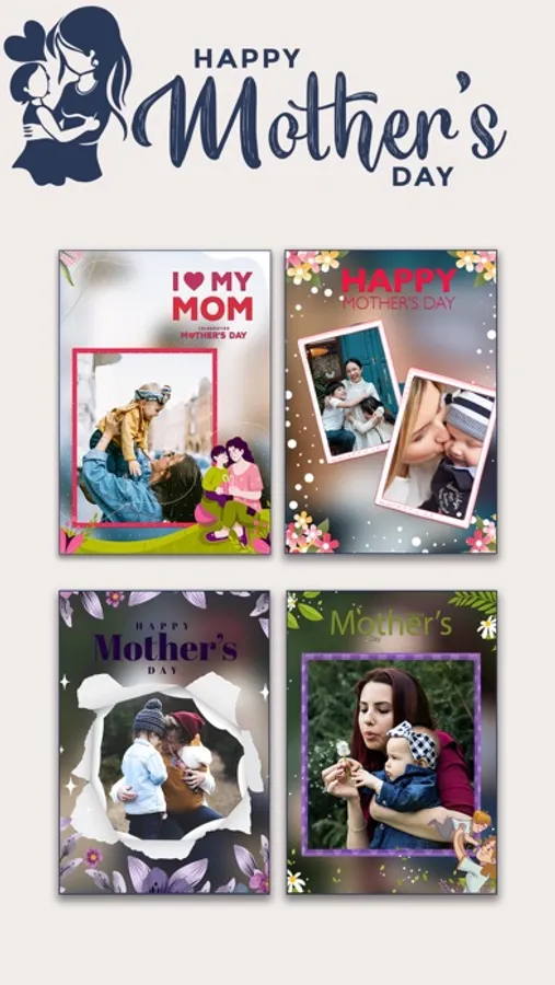 Mothers' Day Photo Frames is a collection of many lovely photo frames for you to decorating your lovely photos. It has the same function as the Love Photo Frames, Birthday Photo Frames and other apps.