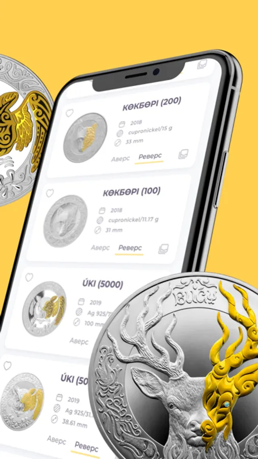 Electronic catalog "Монеты Казахстана" You will have access to a detailed description of the coins, photos, interesting facts, videos, 3D images, augmented reality elements, etc.