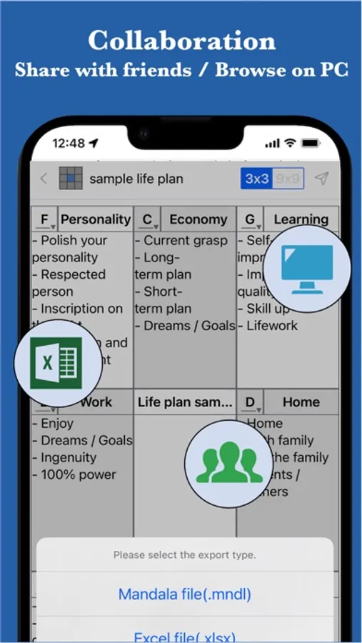 You can share and utilize the created MandalaChart with your acquaintances.