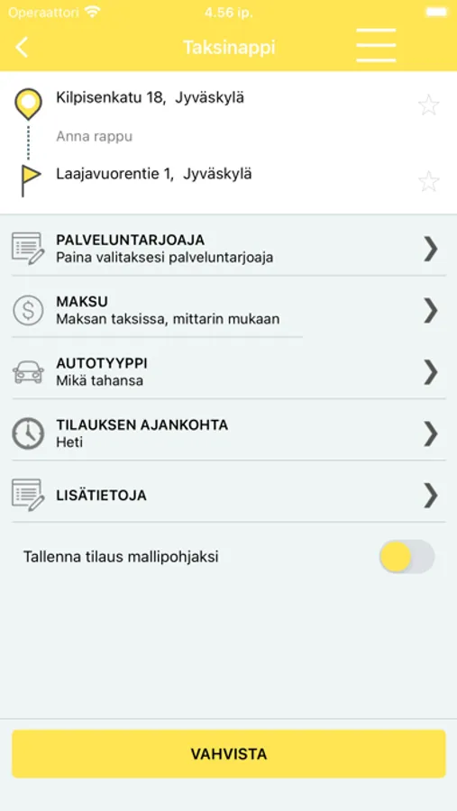 Tee taksimatkastasi helpompi käyttämällä taksinappia.