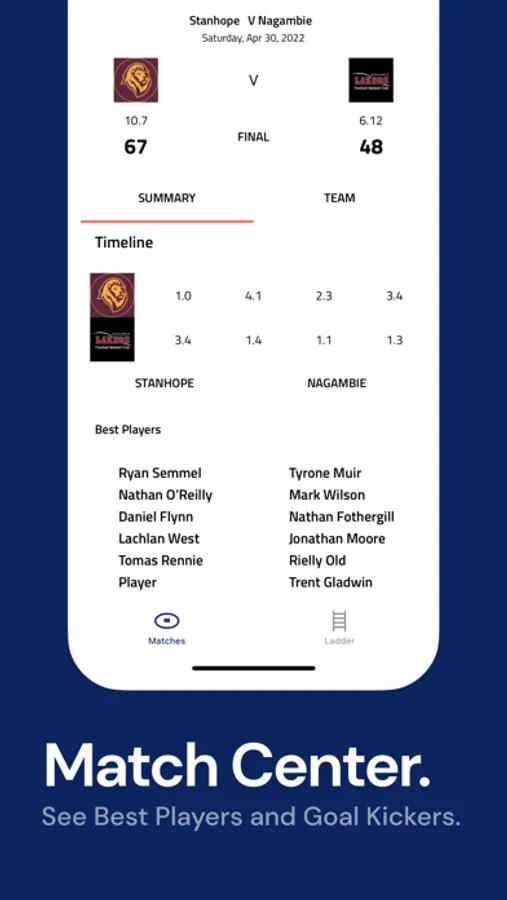 FootyHQ brings Local Footy Scores to your finger tips. See Results, Fixtures, Ladders and Game Details all within seconds of loading the app using data from PlayHQ.