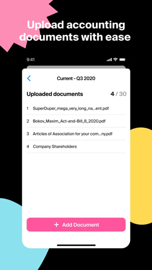 - Uploading accounting documents by taking a picture of them or choosing one from your files