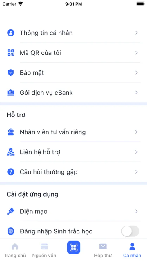 • Đăng nhập/xác thực giao dịch bằng sinh trắc học