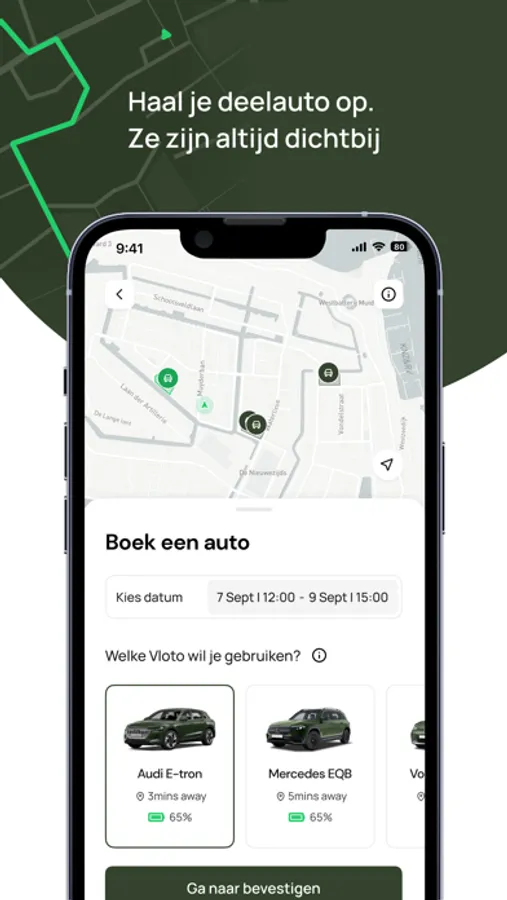 Met Vloto heb je nu ook toegang tot deelauto’s binnen geselecteerde communities. Download de app, maak een account aan en kies een abonnement dat bij jou past. Onze luxe elektrische auto’s zijn schoon en stil en staan altijd bij jou in de buurt, of zelfs in de garage van de VVE.