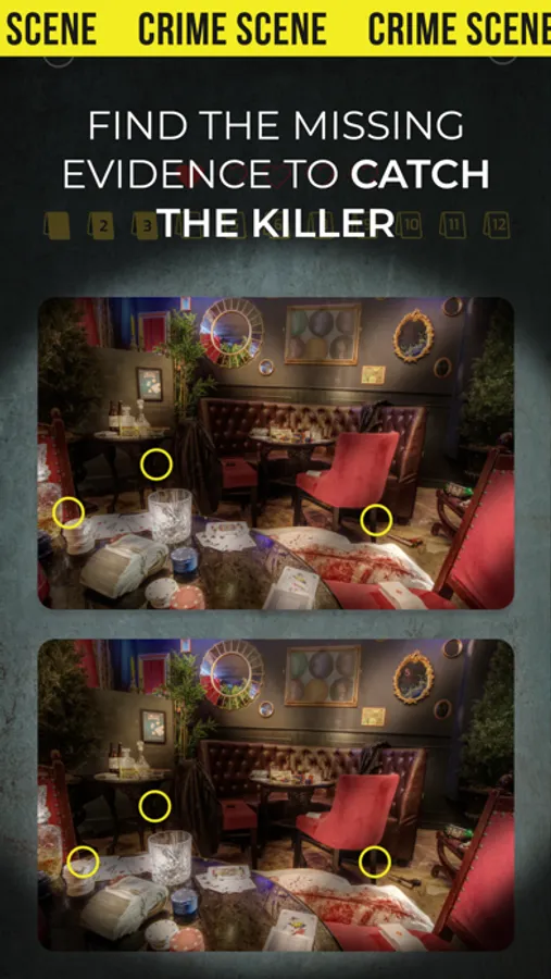 You are a Crime Scene Cop. After analyzing the pictures of a crime scene, you start to notice some stark differences. You soon find yourself on the search for a serial killer who has an obsession for returning to the crime scene. But who is this killer, why are they doing this, and are they trying to send you a message? Can you spot the differences, find the clues, and solve the criminal case?