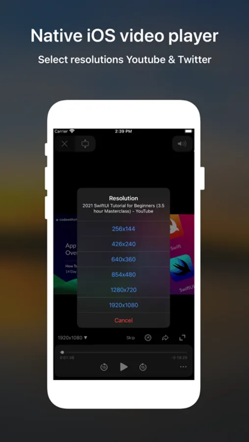 • Native iOS video player: Skip,Change play rate ,select resolutions (Youtube/Twitter)