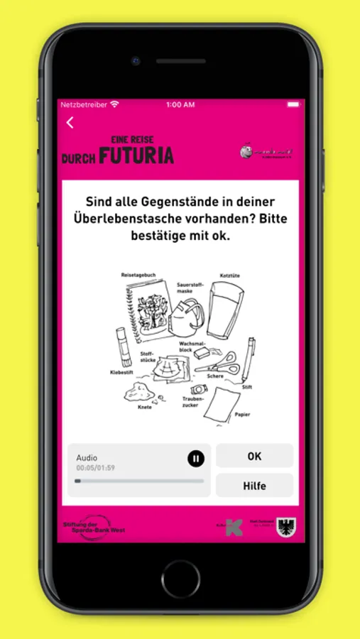 Die App kann erst im mondo mio! Kindermuseum aktiviert werden. Im mondo mio! gibt es eine Forschungsausrüstung an der Kasse zu leihen.