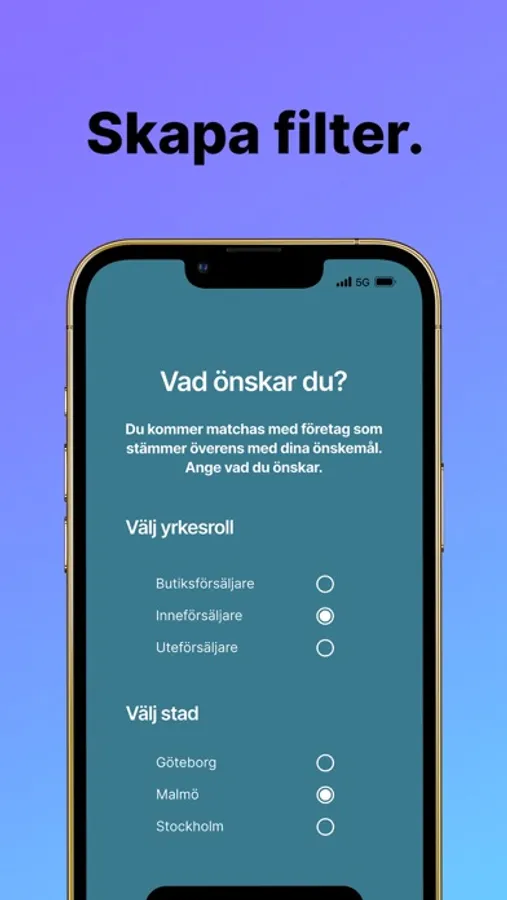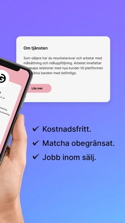 Nu är det enkelt för dig som säljare att hitta jobb. Ladda ner appen och börja matcha med företag som stämmer överens med dina önskemål.