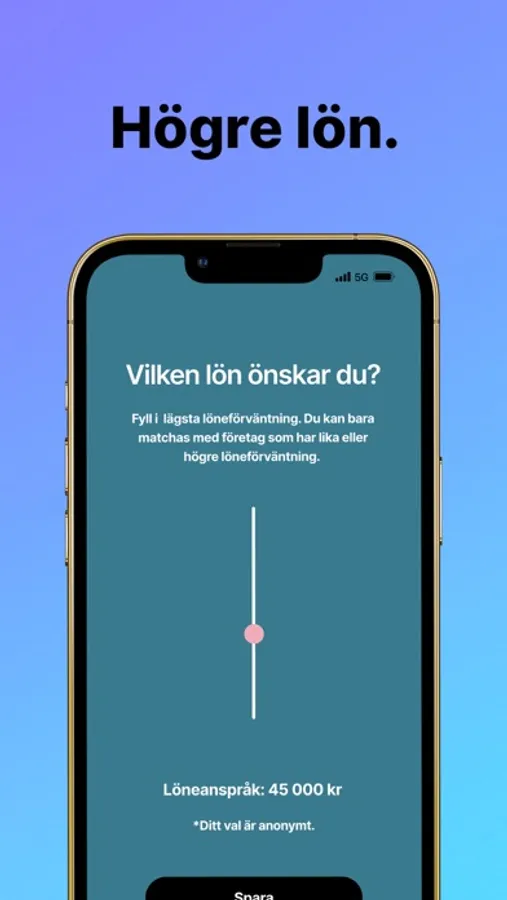 Ange ditt löneanspråk. Alla företag du kan matcha med uppfyller dina löneförväntningar eller högre.