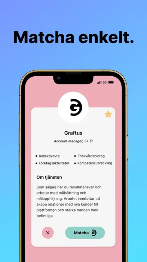 Appen uppdateras ständigt med nya jobb som överensstämmer med dina önskemål. Du väljer sedan vilka du vill matcha med!
