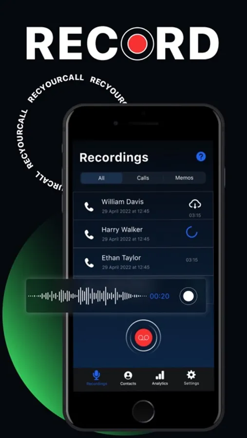 RecYourCall: Call Recorder app has been specifically designed for high-quality and long-time recording with a clean and simple user interface.