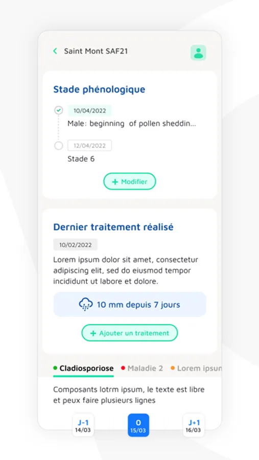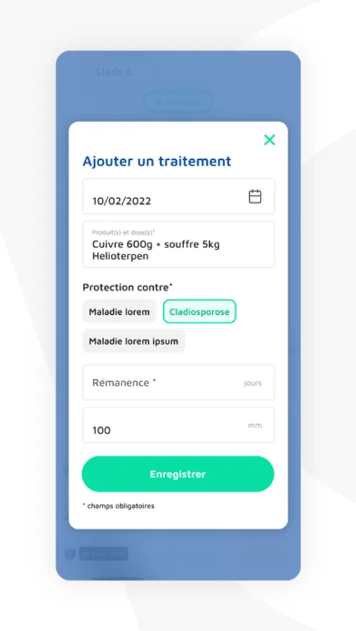 Fill in the treatments carried out on the plot, their persistence and sensitivity to leaching, to estimate the level of protection of your plot, the accumulation of rain since the last treatment and the ideal time to re-intervene thanks to the spray windows.