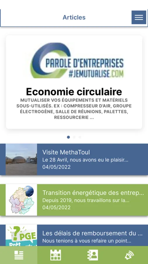 L'application permet la consultation des entreprises adhérentes, des actualités, des réunions et des animations de l’association.