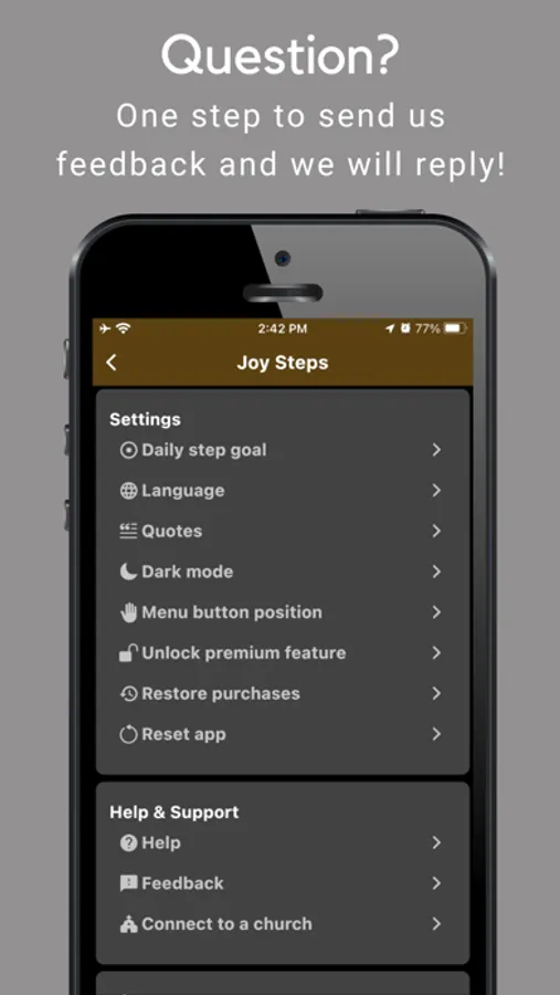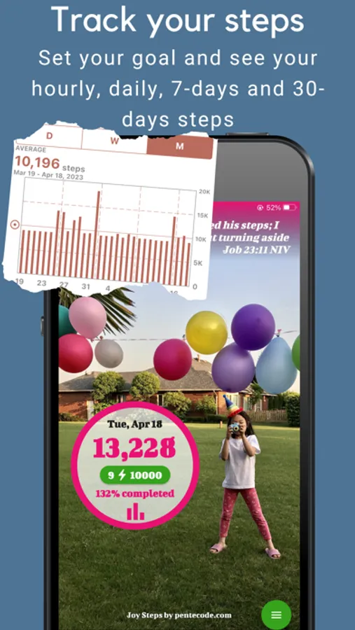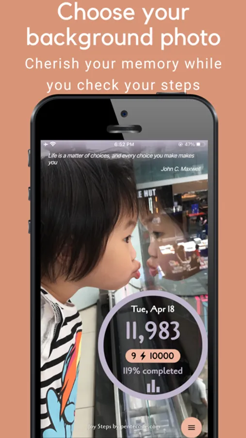 Meet Joy Steps the pedometer. It is the customizable activity tracker and health tracker for counting your steps, regardless if you are walking, jogging, hiking, mountain trekking, Nordic walking, running, exercising, or doing weight loss management! Or even if you are just walking the dog, shopping, doing daily chores, golfing, or whatever, Joy Steps will silently count your footsteps even if it is not on the screen! Then share your achievement with your friends and family, and sharing your steps has never been such a joyful and Instagrammable experience!