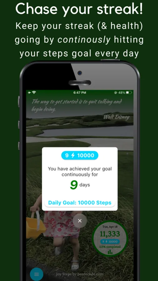 A simple, minimalistic, beautiful step counter app with a design that can be uniquely customized by you with a few taps. With your unique design and by using your photo as your step counter background, sharing your step and streak achievement will never be boring again!