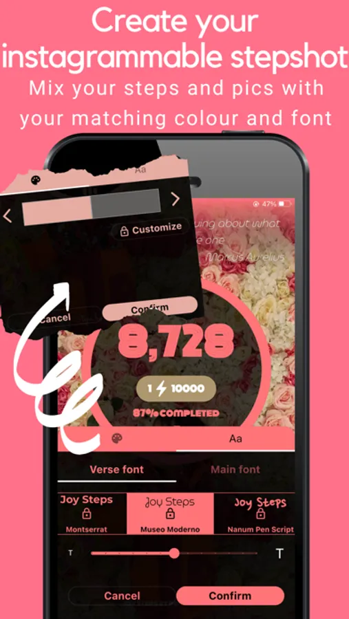 - Choose your background image from Joy Steps' image collections, including licensed artworks from selected charities.