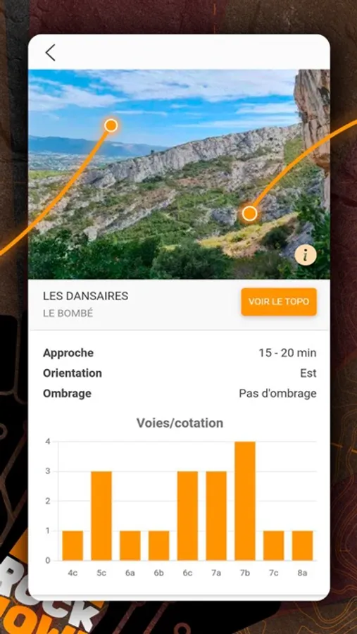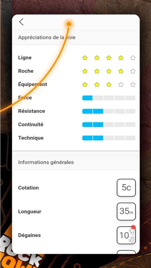 ◉ Topos interactifs te permettant de laisser tes appréciations sur une voie ou un secteur.