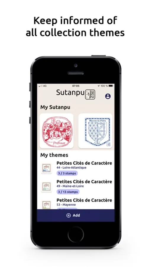 > Using the dashboard screen, you'll know how many stamps you've collected in each theme as well as their rarity.