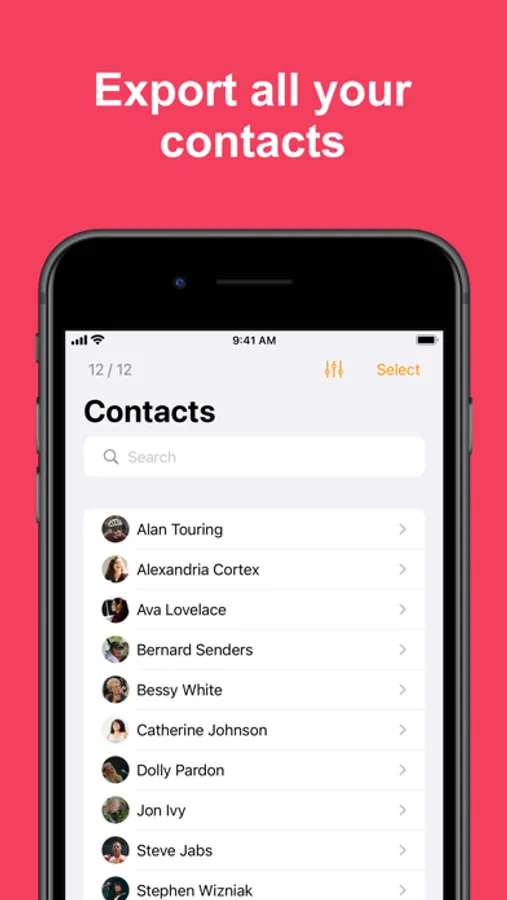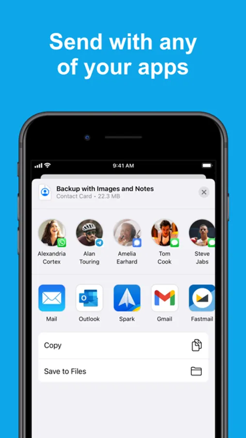 Export all contacts or only a selection, allowing quick and easy bulk sharing of contacts.