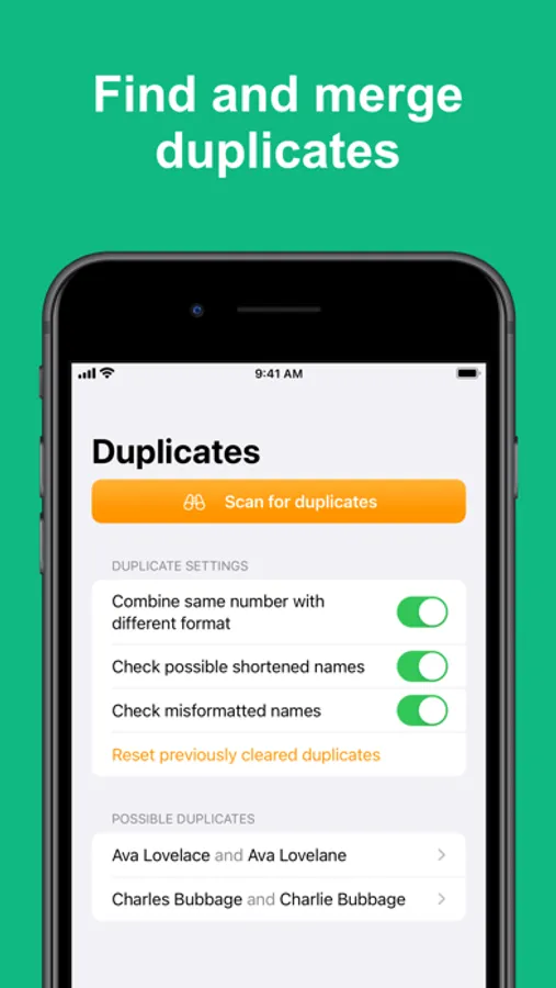 - De-duplicate and merge matching contacts