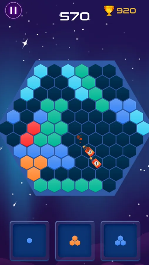 Test your mental power and discover the joy of problem-solving as you strategically place blocks to clear the line and rack up points. HexaBlok is the enhanced version of SpaceBlok, with hexagons!