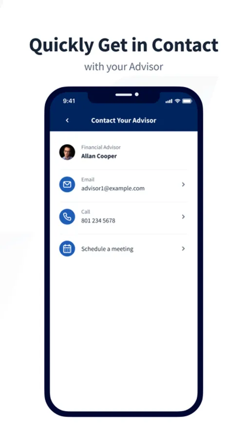 Quickly connect with your Advisor via email, phone, or by scheduling a meeting all within the ClientLink app