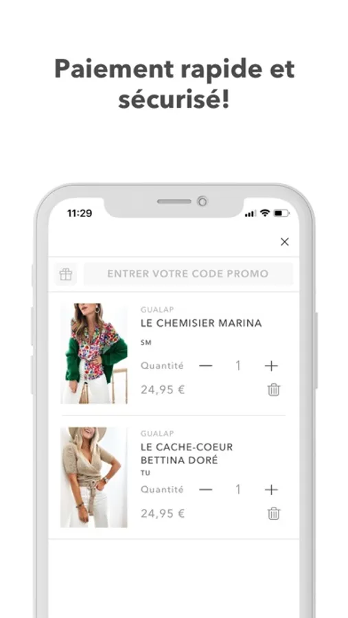 Gualap, c’est une nouvelle collection par semaine pour découvrir les dernières tendance. Découvrez nos total looks, nos conseils mode et les pièces du moment sur notre application officielle.