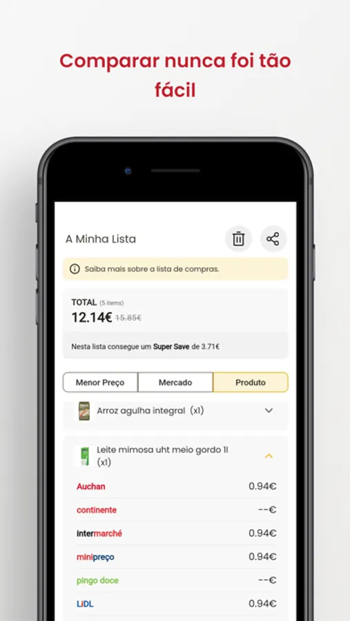 Apresentamos a app Super Save, o novo comparador de preços entre os diferentes supermercado. Pesquise entre os milhares de artigos nas cadeias Auchan, Minipreço, Continente, Pingo Doce e Intermarche e tome a melhor decisão para o seu bolso.