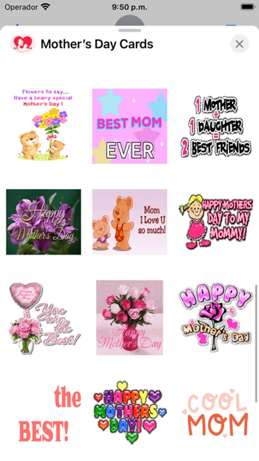 There is a wide variety of Mother’s Day Cards you can choose from this app. Peel and stick them over other conversation bubbles, images, photos, even on other stickers.