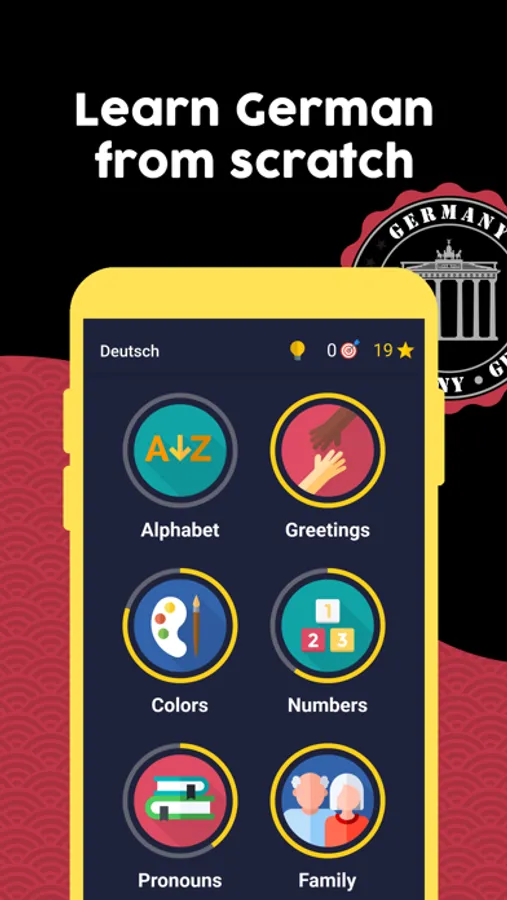 + Learn German in a fun and fast way: Learn while having fun, the app is developed in the form of a game to learn German quickly and easily.