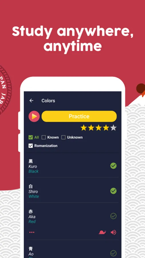 + Learn Japanese in a fun and fast way: Learn while having fun, the app is developed in the form of a game to learn Japanese quickly and easily.