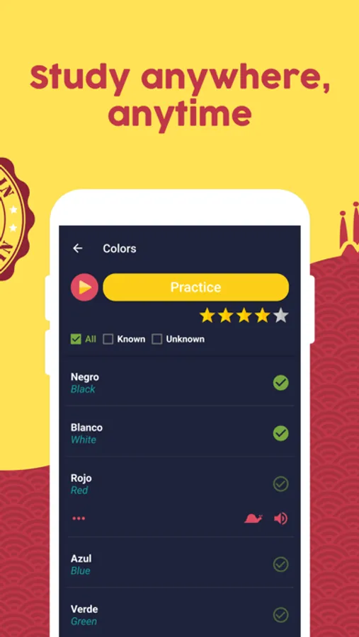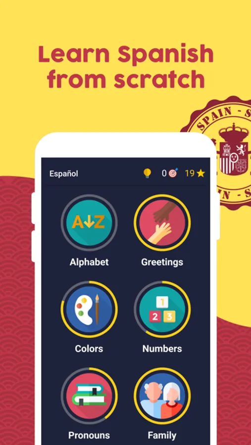 + Learn Spanish in a fun and fast way: Learn while having fun, the app is developed in the form of a game to learn Spanish quickly and easily.