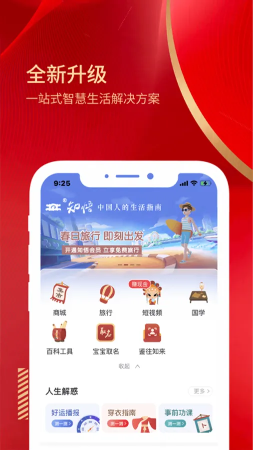 知悟是一款集合式生活服务指南类APP,旨在为国人提供一站式智慧生活解决方案。知悟以互联网+为技术依托,以传统文化为延申,功能涵盖衣、食、住、行全领域,打造中国特色生活生态圈。