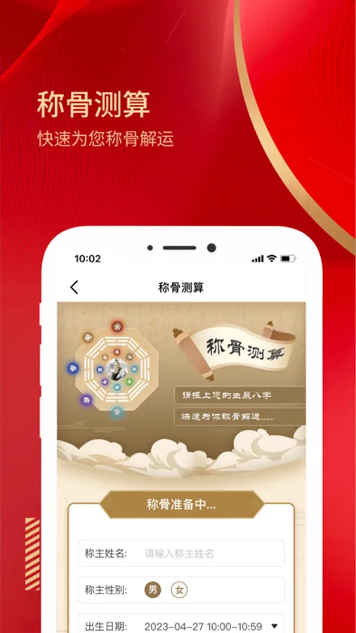 2.娱乐测算:称骨、公司取名、实景罗盘、吉神方位、八字合婚、姓名分析、宝宝取名等会员免费测算。
