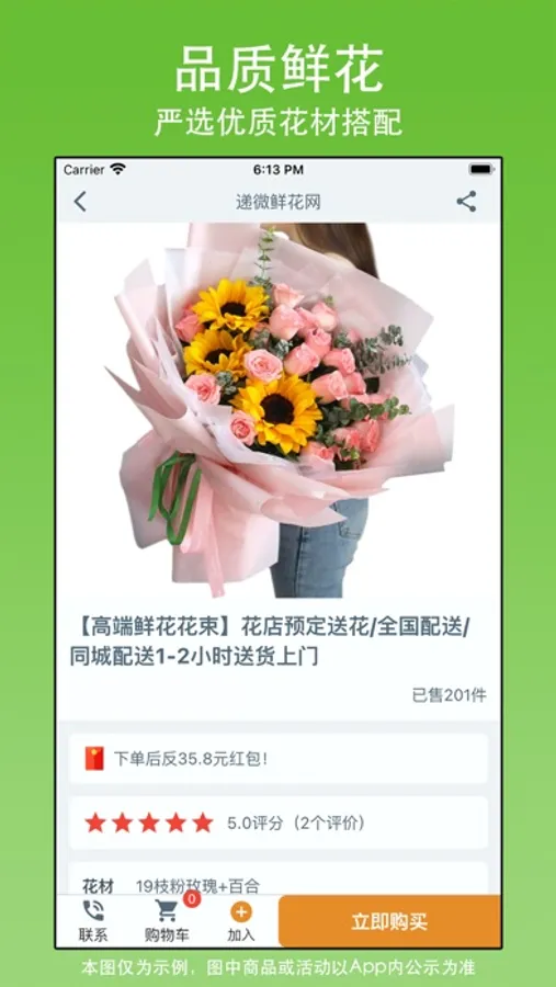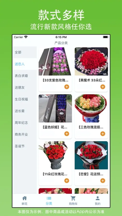 【鲜花订购】使用递微鲜花网,可以订购多种鲜花产品,适合情人节、520、母亲节、七夕节、圣诞节、生日、恋爱、周年纪念日等场景。产品丰富多彩,包括花束、花篮、绿叶及商务用花。