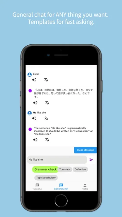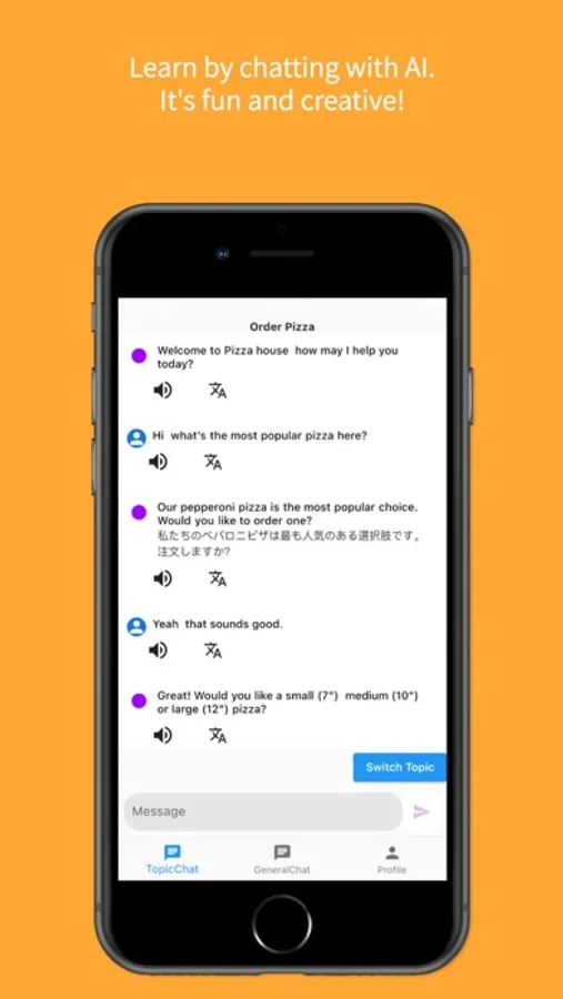 No more boring grammar practice. Instead, learn by having real-world conversations with AI on the topics that interest you.
