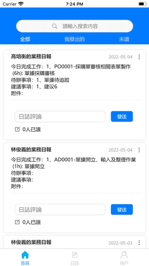 >>检视日志:主管或员工依照权限政策,可以查看下属工作日志,并针对日志进行评论,让工作有迹可循。