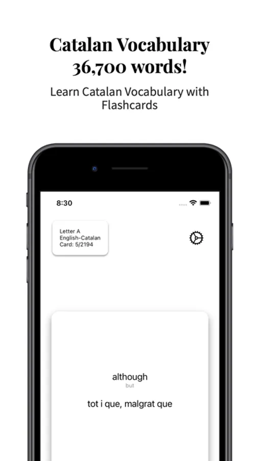 Learn or improve your Catalan vocabulary with this flashcard app. Try to guess the translation of the word or expression. A tap on the card and the translation appears under the word instantly. You wil learn Catalan vocabulary at your own pace. A swipe on the right or the left to show the next word.