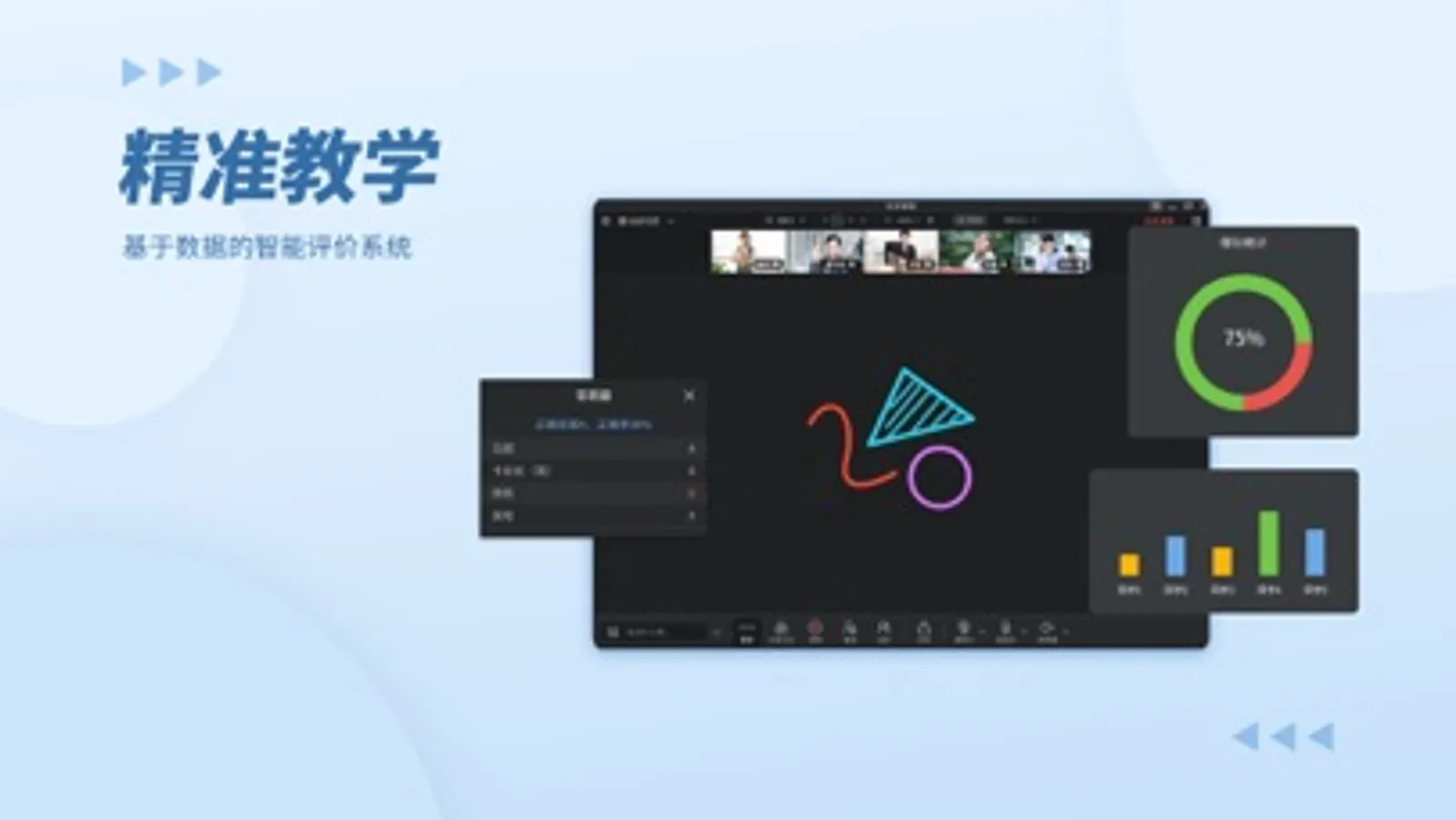 更好服务教学过程:深入打磨白板、录制、屏幕共享、文件共享等教学内容呈现相关模块,灵活满足各种教学法的落地。