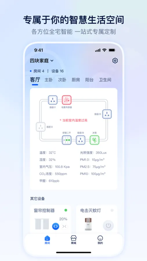 四块智家app是一款可以简单便捷地通过手机与智能硬件交互,并实现智能硬件之间的互联互通的管理系统。四块智家以住宅为平台,利用综合布线技术、网络通信技术、 安全防范技术、自动控制技术、音视频技术将家居生活有关的设施集成,构建高效的住宅设施与家庭日程事务,提升家居安全性、便利性、舒适性、艺术性,并实现环保节能的居住环境。智能生活,在这里变得非常简单。