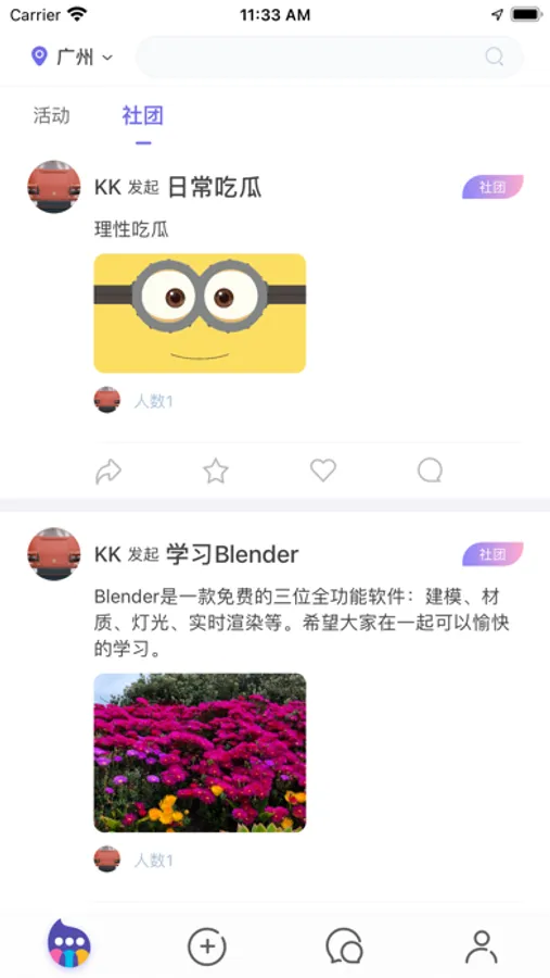 【主页】查看所在地区有趣的社团和活动,并且加入他们