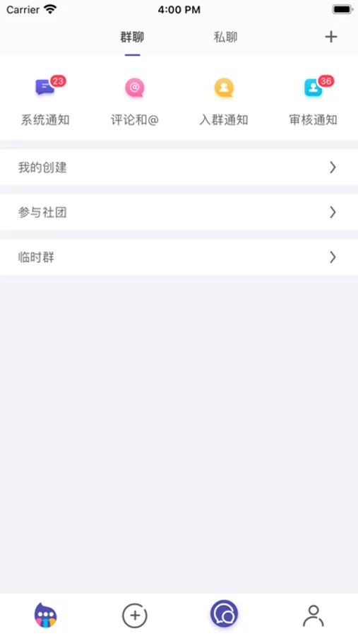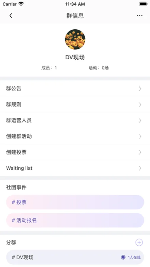 【群聊】不限人数规模的群聊,可以创建不同话题的细分群聊。活动临时群能为每一场活动提供群聊便利。