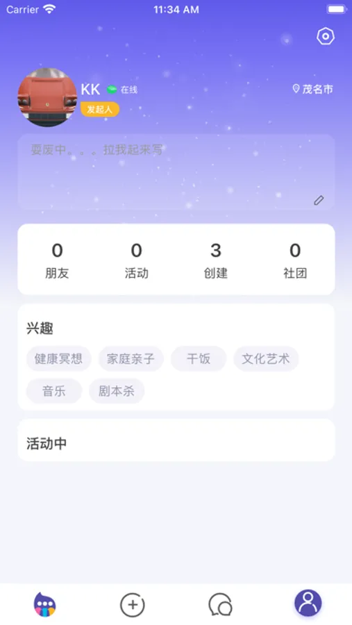 【创建】创建属于你自己的社团,然后在社团里创建你的活动,并且展示在主页中
