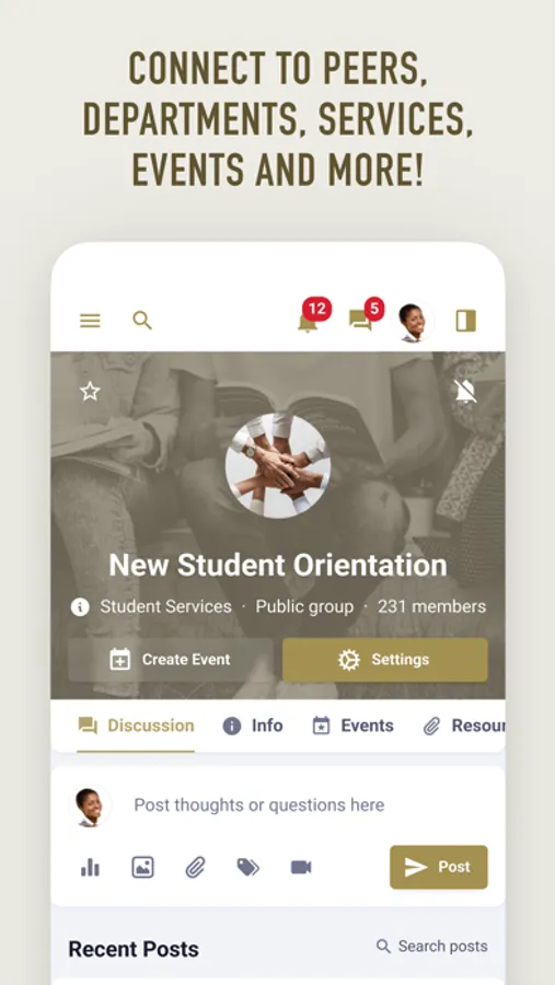 - Find and join campus events