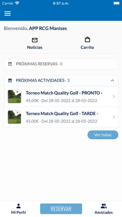 Bienvenido a la aplicación Del Real Club de Golf Manises. La compañía perfecta en tus partidas de golf y la mejor forma de mantenerte al día con el Club.