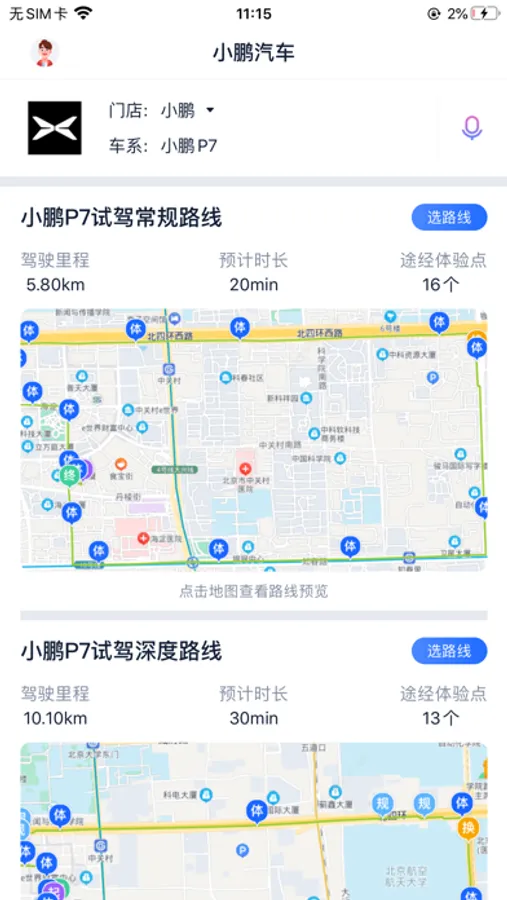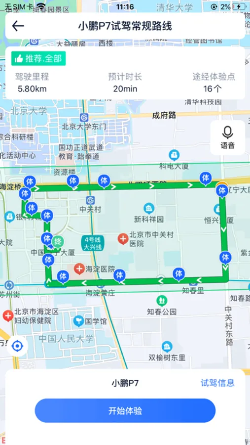 试驾路线预览:可在预览页面查看试驾路线,查看全部体验点,并收听体验点对应的语音播报;