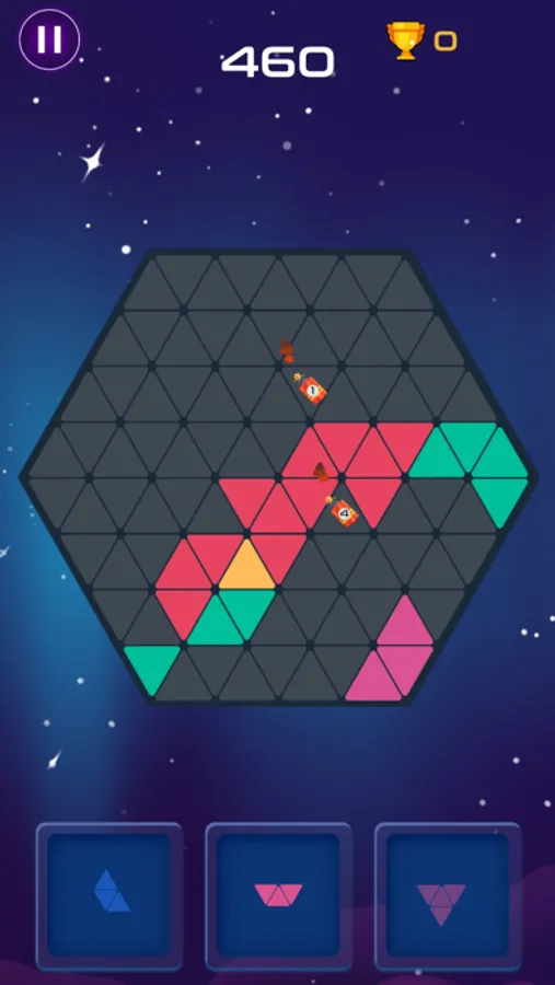 Test your mental power and discover the joy of problem-solving as you strategically place blocks to clear the line and rack up points. TriBlok is the enhanced version of SpaceBlok, with triangles!