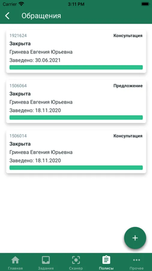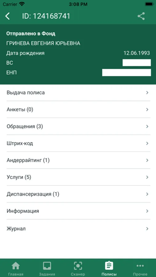 - Просматривать информацию по застрахованным (полис, обращения, анкеты, услуги, диспансеризация).