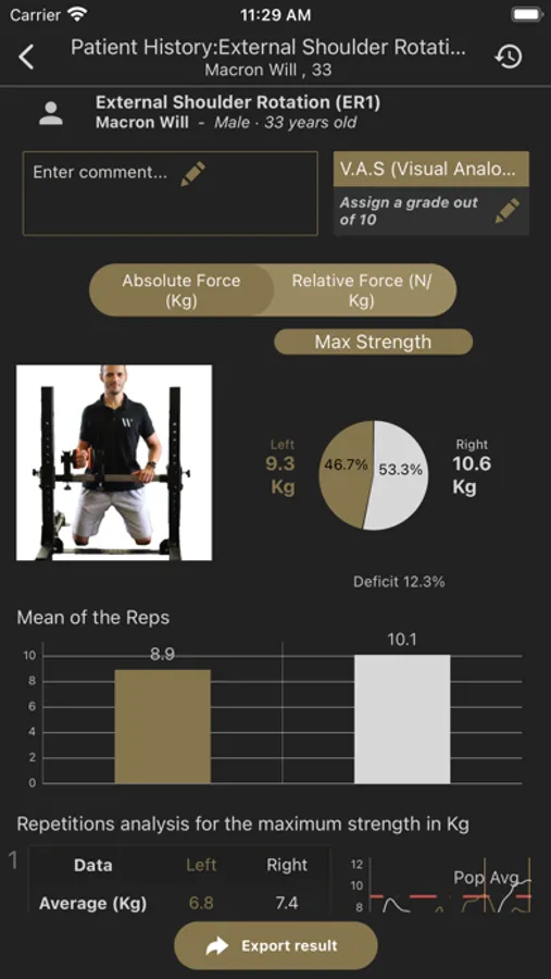The App, together with the Muscle Controller devices, is measuring forces. The targeted exercises with real time biofeedback, the display of progress and the quantified measurements inspire confidence and motivation to the health professionals and their patients.